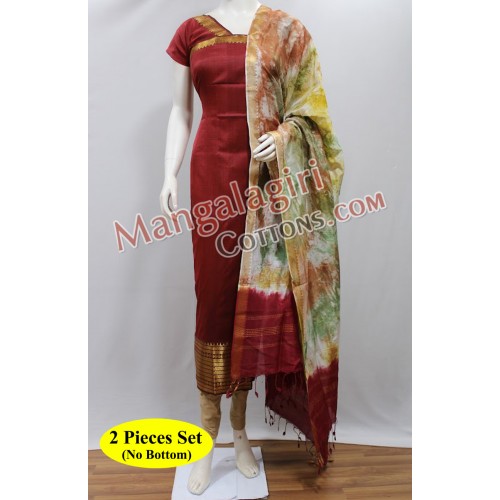 Shibori Print Mangalagiri SemiPattu 2 Pieces Set Dress Material (No Bottom). Top(Cotton+Silk Mix):2.5m, Duppata(Cotton+Silk Mix):2.5m. Weaving pattern: Semi thick weaving.