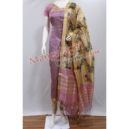Printed Mangalagiri SemiPattu Dress Material. 3 Pieces set. Top(Cotton+Silk Mix):2.5m, Bottom(Cotton):2m & Duppata(Cotton+Silk Mix):2.5m. Weaving pattern:Semi thick weaving.