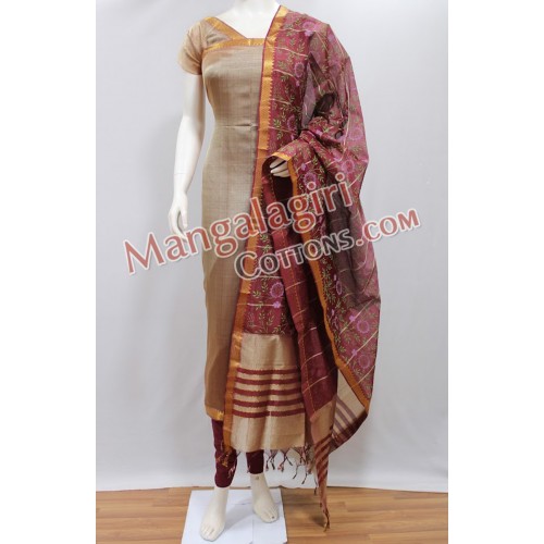 Printed Mangalagiri SemiPattu Dress Material. 3 Pieces set. Top(Cotton+Silk Mix):2.5m, Bottom(Cotton):2m & Duppata(Cotton+Silk Mix):2.5m. Weaving pattern:Semi thick weaving.