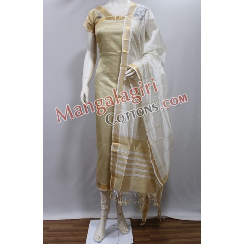 Mangalagiri SemiPattu Dress Material. 3 Pieces set. Top(Cotton+Silk Mix):2.5m, Bottom(Cotton):2m & Duppata(Cotton+Silk Mix):2.5m. Weaving pattern:Semi thick weaving.