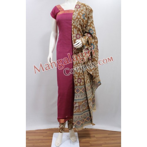 Kalamkari Printed Dress Material With Mangalagiri Handloom Zari Top. 3 Pieces set: Top: 2.5m, Bottom:2m, Duppata:2.5m.