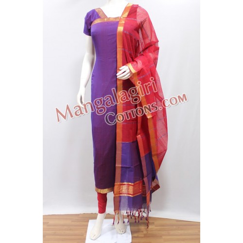 Mangalagiri Cotton Dress Material. 3 Pieces set: Top: 2.5m, Bottom:2m, Duppata:2.5m.Weaving pattern: Semi thick weaving.