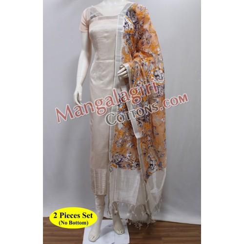 Print Mangalagiri SemiPattu 2 Pieces Set Dress Material (No Bottom). Top(Cotton+Silk Mix):2.5m, Duppata(Cotton+Silk Mix):2.5m. Weaving pattern: Semi thick weaving.