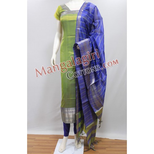 Mangalagiri SemiPattu Dress Material. 3 Pieces set. Top(Cotton+Silk Mix):2.5m, Bottom(Cotton):2m & Duppata(Cotton+Silk Mix):2.5m. Weaving pattern:Semi thick weaving.