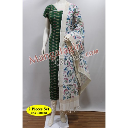 Two piece suit set. Mercerized ikkath SemiSilk Top 2.5meters , Handloom cotton printed Dupatta 2.5meters.Weaving Pattern:Thick weaving.