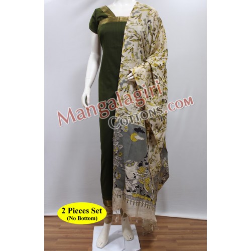 Kalamkari SemiSilk Dupatta(2.5meters)With Mangalagiri Handloom Nizam Zari Border Top(2.5meters) Two Pieces SuitSet