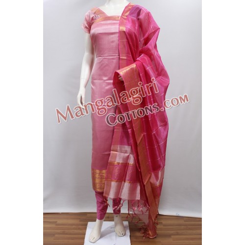 Mangalagiri SemiPattu Dress Material. 3 Pieces set. Top(Cotton+Silk Mix):2.5m, Bottom(Cotton):2m & Duppata(Cotton+Silk Mix):2.5m. Weaving pattern:Semi thick weaving.