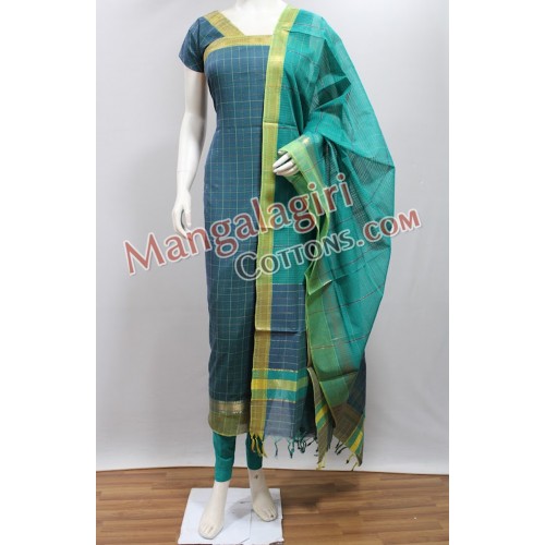 Mangalagiri Cotton Dress Material. 3 Pieces set: Top: 2.5m, Bottom:2m, Duppata:2.5m.Weaving pattern: Semi thick weaving.