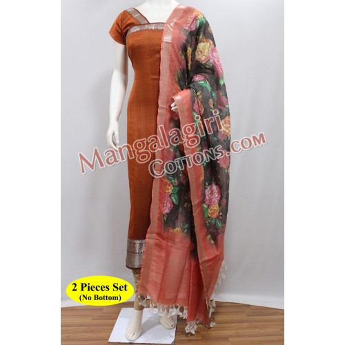 Digital Print Mangalagiri SemiPattu 2 Pieces Set Dress Material (No Bottom). Top(Cotton+Silk Mix):2.5m, Duppata(Cotton+Silk Mix):2.5m. Weaving pattern: Semi thick weaving.