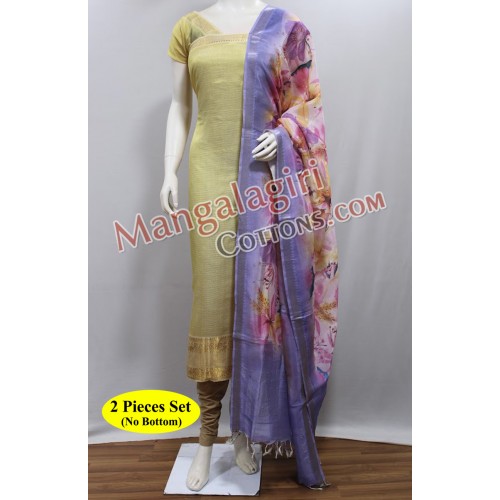 Mangalagiri Handloom Semi Pattu Top with Gold Zari Border and Semi Pattu Digital Print Dupatta. Unstitched 2 Pieces Set.
