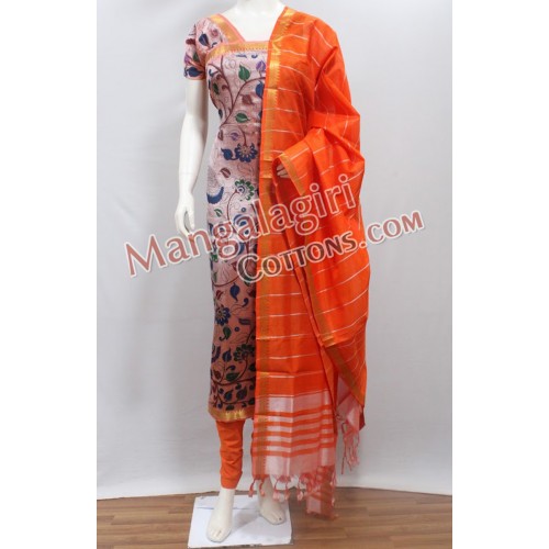 Printed Mangalagiri SemiPattu Dress Material. 3 Pieces set. Top(Cotton+Silk Mix):2.5m, Bottom(Cotton):2m & Duppata(Cotton+Silk Mix):2.5m. Weaving pattern:Semi thick weaving.