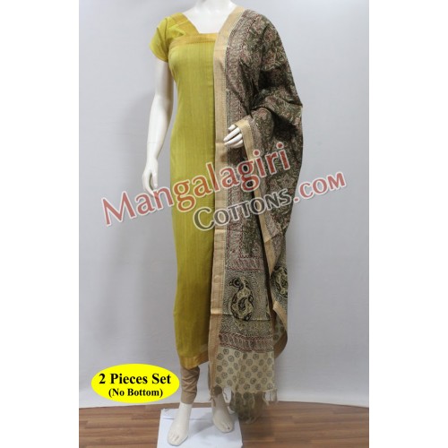 Kalamkari Cotton ZariBoarder Dupatta(2.5meters)With Mangalagiri Handloom Nizam Zari Border Top(2.5meters) Two Pieces SuitSet