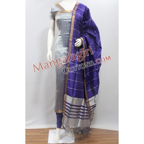 Mangalagiri SemiPattu Dress Material. 3 Pieces set. Top(Cotton+Silk Mix):2.5m, Bottom(Cotton):2m & Duppata(Cotton+Silk Mix):2.5m. Weaving pattern:Semi thick weaving.