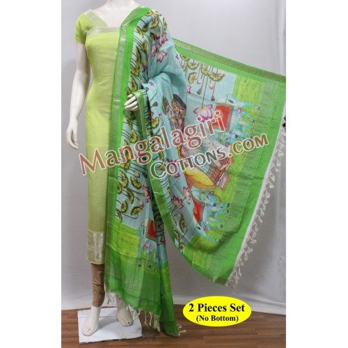 Digital Print Mangalagiri SemiPattu 2 Pieces Set Dress Material (No Bottom). Top(Cotton+Silk Mix):2.5m, Duppata(Cotton+Silk Mix):2.5m. Weaving pattern: Semi thick weaving.