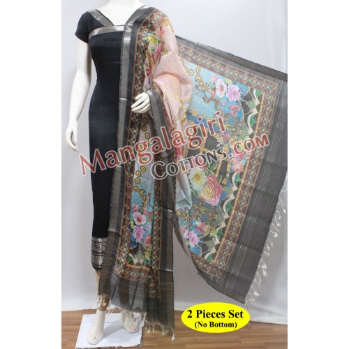 Digital Print Mangalagiri SemiPattu 2 Pieces Set Dress Material (No Bottom). Top(Cotton+Silk Mix):2.5m, Duppata(Cotton+Silk Mix):2.5m. Weaving pattern: Semi thick weaving.