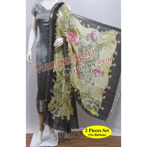 Digital Print Mangalagiri SemiPattu 2 Pieces Set Dress Material (No Bottom). Top(Cotton+Silk Mix):2.5m, Duppata(Cotton+Silk Mix):2.5m. Weaving pattern: Semi thick weaving.