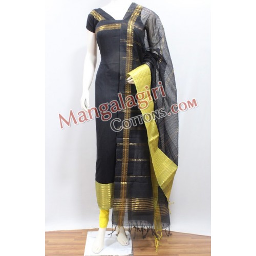 Mangalagiri Handloom Pure Cotton Dress Material with Gold Zari Border.Unstitched 3 Pieces Set.