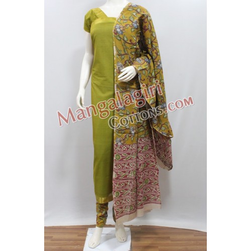 Kalamkari Printed Dress Material With Mangalagiri Handloom Zari Top. 3 Pieces set: Top: 2.5m, Bottom:2m, Duppata:2.5m.