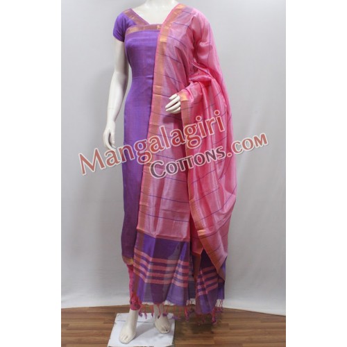 Mangalagiri SemiPattu Dress Material. 3 Pieces set. Top(Cotton+Silk Mix):2.5m, Bottom(Cotton):2m & Duppata(Cotton+Silk Mix):2.5m. Weaving pattern:Semi thick weaving.