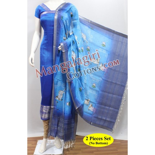 Digital Print Mangalagiri SemiPattu 2 Pieces Set Dress Material (No Bottom). Top(Cotton+Silk Mix):2.5m, Duppata(Cotton+Silk Mix):2.5m. Weaving pattern: Semi thick weaving.
