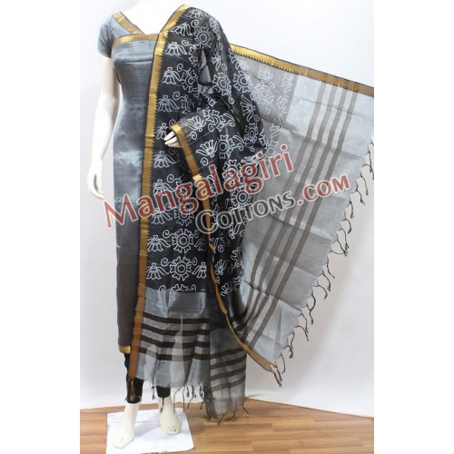 Printed Mangalagiri SemiPattu Dress Material. 3 Pieces set. Top(Cotton+Silk Mix):2.5m, Bottom(Cotton):2m & Duppata(Cotton+Silk Mix):2.5m. Weaving pattern:Semi thick weaving.