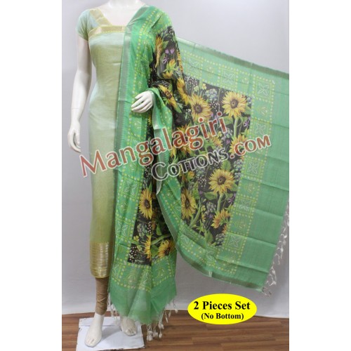 Mangalagiri Handloom Semi Pattu Silver Zari Border Top with Mangalagiri Handloom Semi Pattu Digital Print Dupatta. Unstitched 2 Pieces Set.