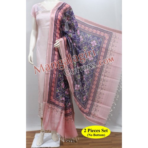 Mangalagiri Handloom Digital Printed Semi Pattu Dress Material. 2 Pieces Set: