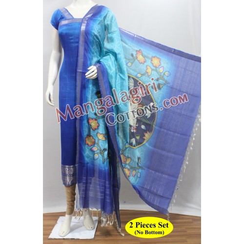 Mangalagiri Handloom Digital Printed Semi Pattu Dress Material. 2 Pieces Set: