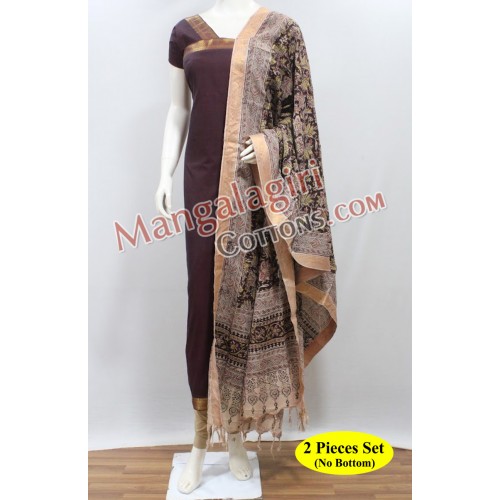 Mangalagiri Handloom Cotton Nizam Border Top with Kalamkari Silk Dupatta. Unstitched 2 Pieces Set: