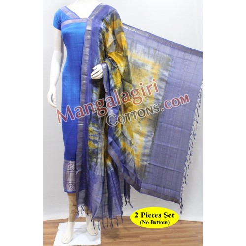 Mangalagiri Handloom Semi Pattu Top Silver Zari Border and SemiPattu Shibori Printed Dupatta. Unstitched 2 Pieces Set: