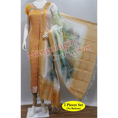 Mangalagiri Handloom Semi Pattu printed Dress Material with Silver Zari Border. Unstitched 3 Pieces Set: