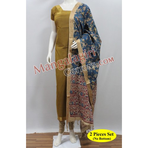 Mangalagiri Handloom Cotton Nizam Border Top with Kalamkari Silk Dupatta. Unstitched 2 Pieces Set: