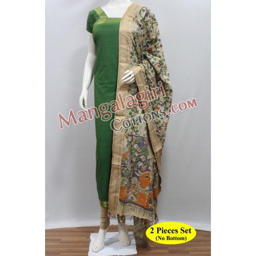 Mangalagiri Handloom Cotton Nizam Border Top with Kalamkari Silk Dupatta. Unstitched 2 Pieces Set: