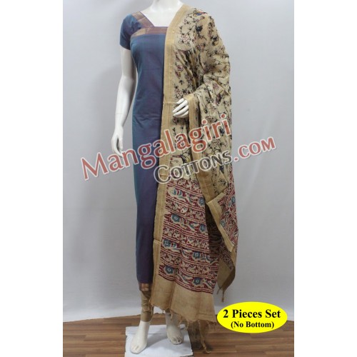 Mangalagiri Handloom Cotton Nizam Border Top with Kalamkari Silk Dupatta. Unstitched 2 Pieces Set:
