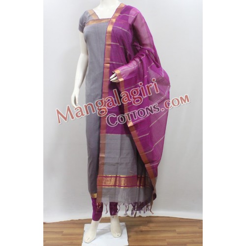 Mangalagiri Handloom Pure Cotton Dress Material with Gold Zari Border. Unstitched 3 Pieces Set.