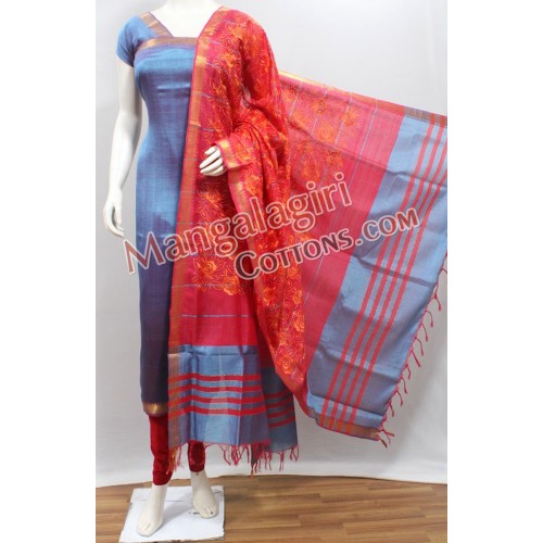 Mangalagiri Handloom Semi Pattu Dress Material with Gold Zari Border and Duppata with Chikankari work. Unstitched 3 Pieces Set: