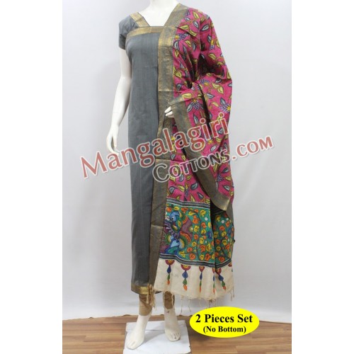 Mangalagiri Handloom Cotton Nizam Border Top with Kalamkari Hand Painted Silk Dupatta. Unstitched 2 Pieces Set: