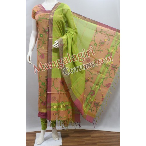 Mangalagiri Handloom Pure Cotton Printed Dress Material with Gold Zari Border.Unstitched 3 Pieces Set