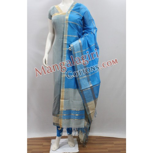 Mangalagiri Handloom Pure Cotton Dress Material with Gold Zari Border. Unstitched 3 Pieces Set.