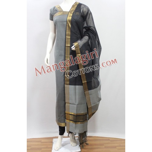 Mangalagiri Handloom Pure Cotton Dress Material with Gold Zari Border. Unstitched 3 Pieces Set.