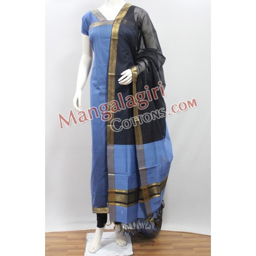 Mangalagiri Handloom Pure Cotton Dress Material with Gold Zari Border. Unstitched 3 Pieces Set.