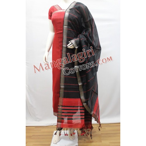 Mangalagiri Handloom Semi Pattu Dress Material with Silver Zari Border. Unstitched 3 Pieces Set: