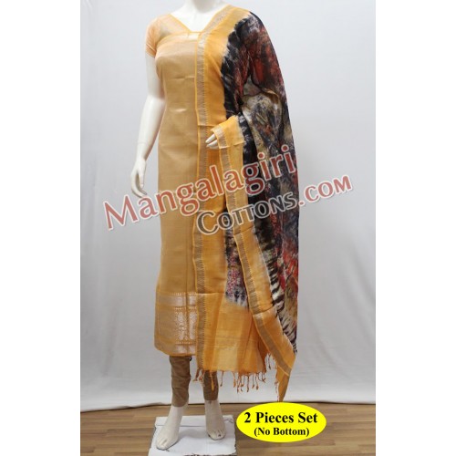 Mangalagiri Handloom Semi Pattu Top Silver Zari Border and SemiPattu Shibori Printed Dupatta. Unstitched 2 Pieces Set:
