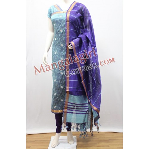 Mangalagiri Handloom Semi Pattu Dress Material with Gold Zari Border and Allover Chikankari work on Top Material. Unstitched 3 Pieces Set: