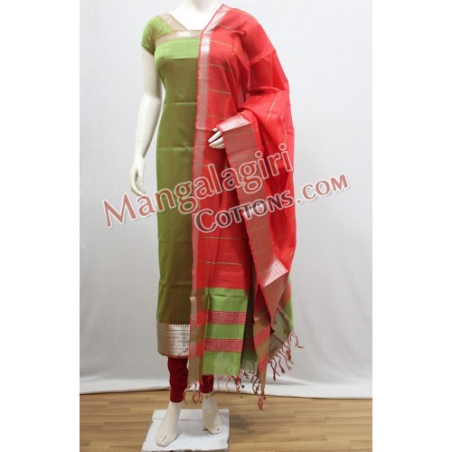 Mangalagiri Handloom Semi Pattu Dress Material with Silver Zari Border. Unstitched 3 Pieces Set: