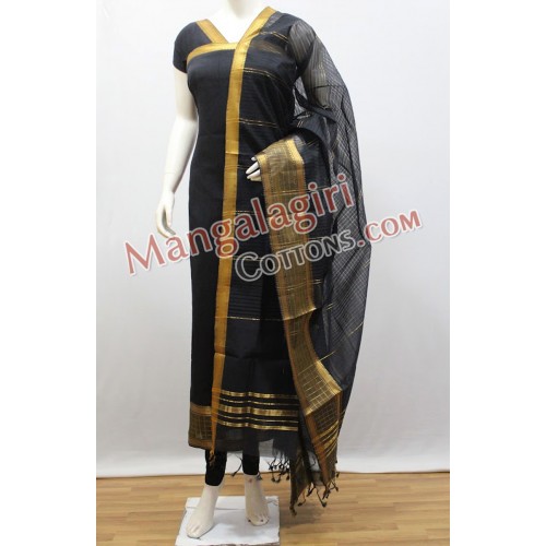Mangalagiri Handloom Pure Cotton Dress Material with Gold Zari Border. Unstitched 3 Pieces Set.