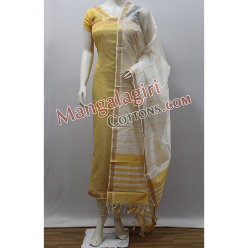 Mangalagiri Handloom Semi Pattu Dress Material with Gold Zari Border. Unstitched 3 Pieces Set:
