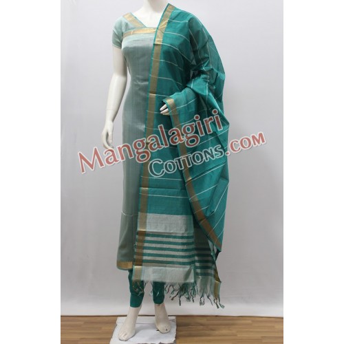 Mangalagiri Handloom Semi Pattu Dress Material with Gold Zari Border. Unstitched 3 Pieces Set: