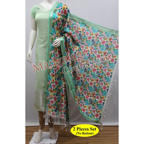 Mangalagiri Handloom Semi Pattu Top with Silver Zari Border and Semi Pattu Digital Print Dupatta. Unstitched 2 Pieces Set.
