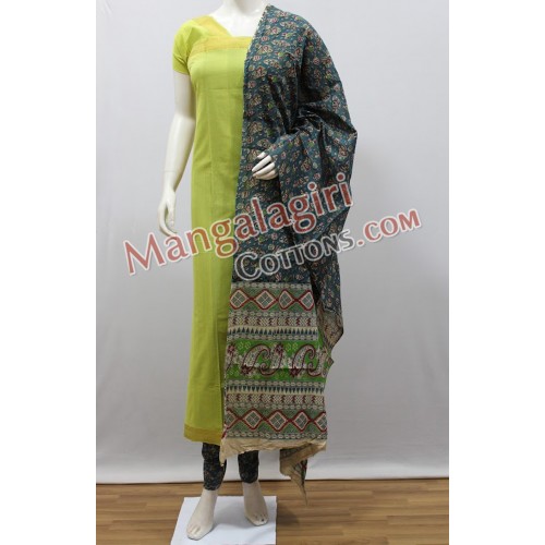 Mangalagiri Handloom Cotton Nizam Border Top with Cotton Kalamkari Bottom and Dupatta. Unstitched 3 Pieces Set: